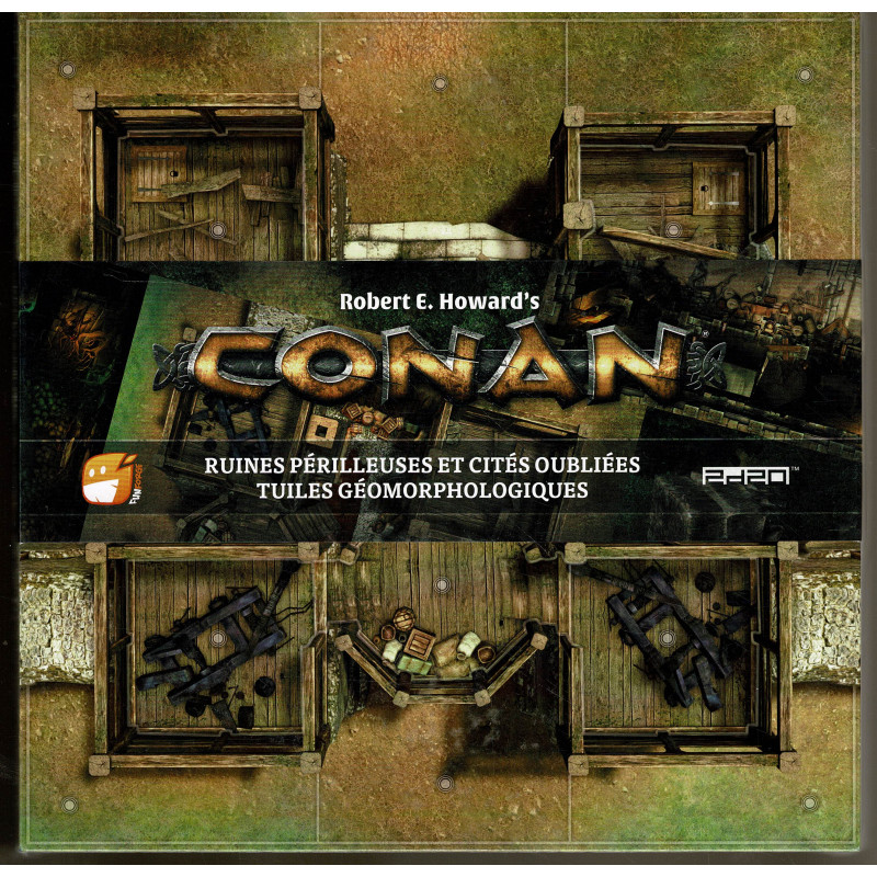 Cet accessoire propose des tuiles géomorphiques recto-verso en couleur avec zones de déplacements définies pour jouer avec vos figurines de 28-32 mm (compatibles par ailleurs avec le jeu de plateau CONAN des éditions Monolith).
