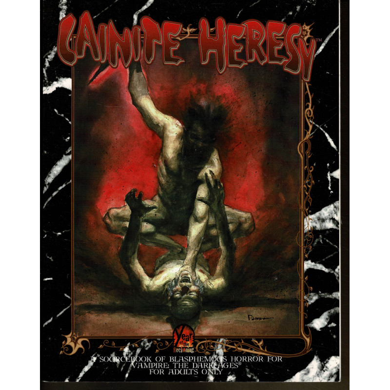 Ce livret de 96 pages en noir & blanc à couverture souple propose un supplément de contexte qui révèle au grand jour les diverses hérésies des Caïnites, qu'elles soient issues de mythes humains ou vampiriques ou bien des hérésies humaines élaborées à partir de textes bibliques, pré-bibliques ou apocryphes.